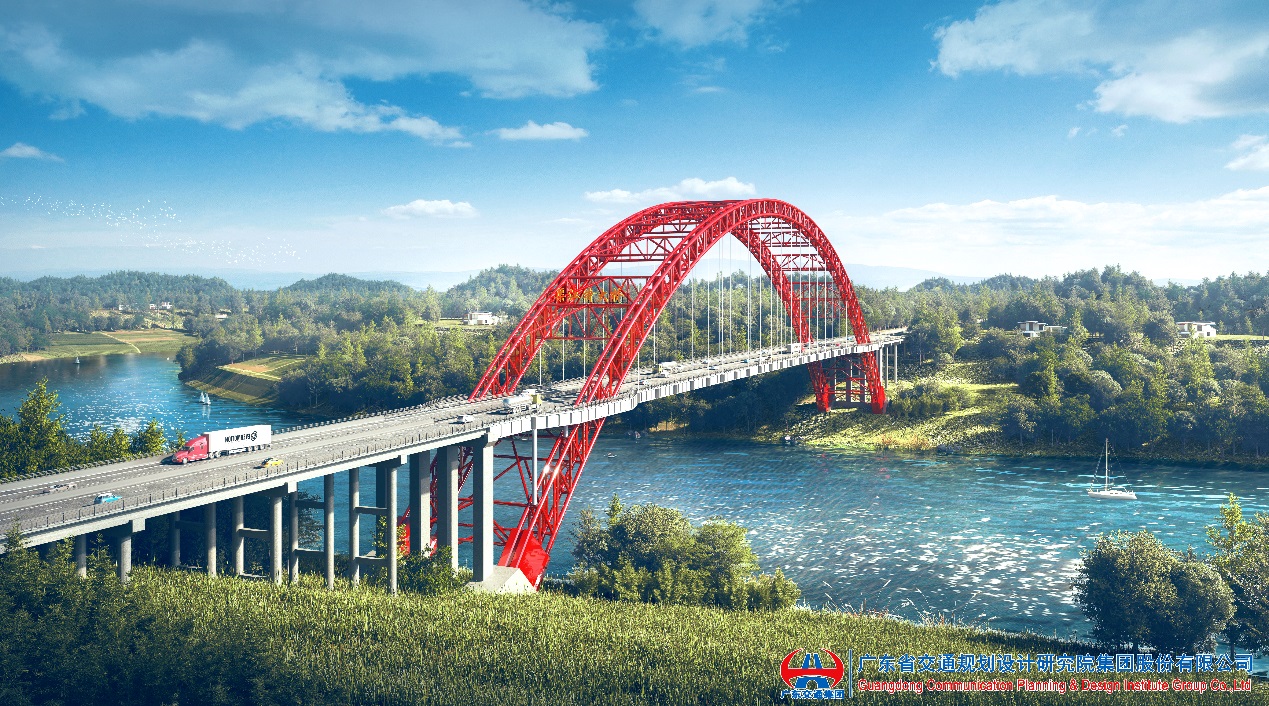 该桥是我公司第二设计院设计的一座主跨超400m的中承式钢管混凝土拱桥。在主桥设计过程中,我公司精心组织调研、认真消化吸收类似桥梁的研究成果、深入钻研关键技术,并在四川红层软弱互层扩大基础设计、桁架式拱抗风遮挡效应等方面进行了科研创新。主桥成果赢得了专家和业主的一致好评。该项目的顺利推进大大提升了我公司在省外市场的品牌影响力。