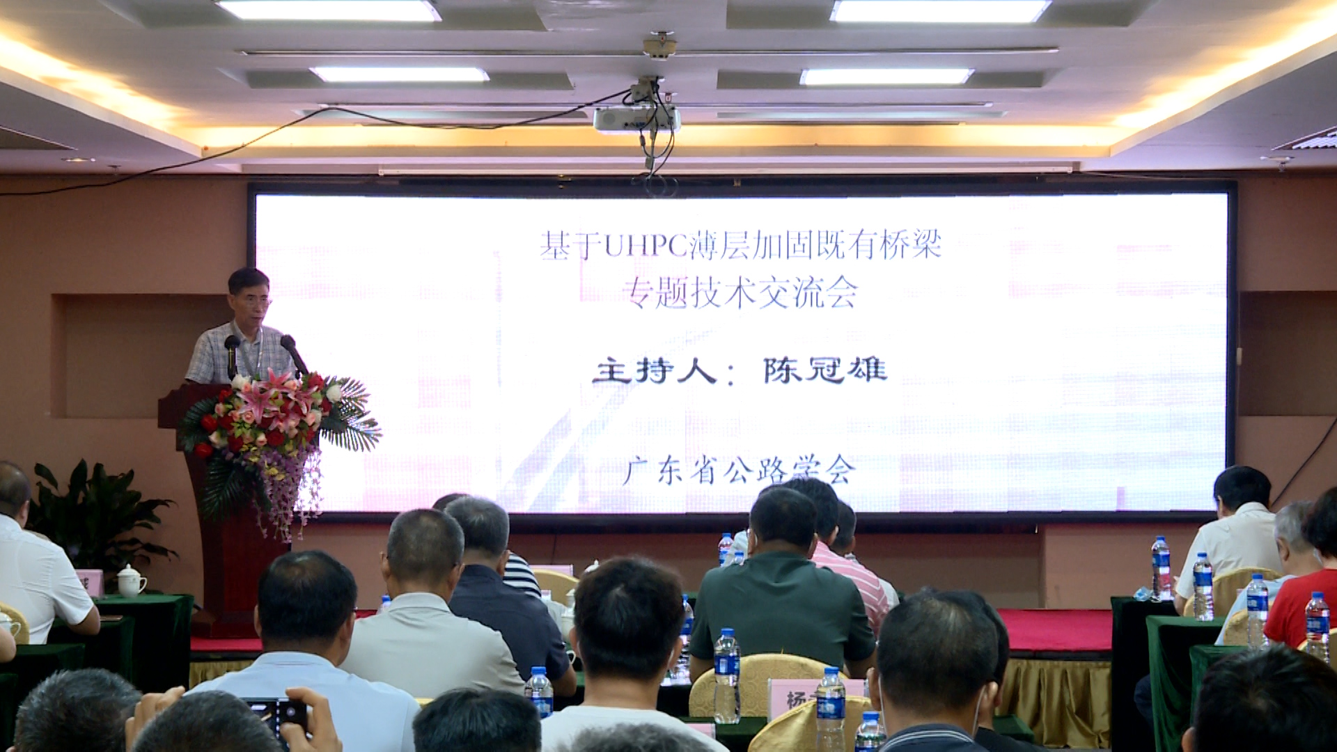 技术交流会上,集团副总工程师万志勇作了题为“肇庆市沙尾桥T梁UHPC加固设计”的报告,对沙尾桥的概况、加固方案分析比选、UHPC加固设计及施工技术要点、加固前后检测情况、技术应用展望等方面进行了介绍;项目科研单位广东工业大学的贺绍华副教授作了题为“基于UHPC薄层的既有桥梁加固关键技术”的报告;施工单位代表中路杜拉总工程师田月强作了题为“肇庆市高要区Y013线沙尾桥超高性能混凝土加固应用介绍”的报告。