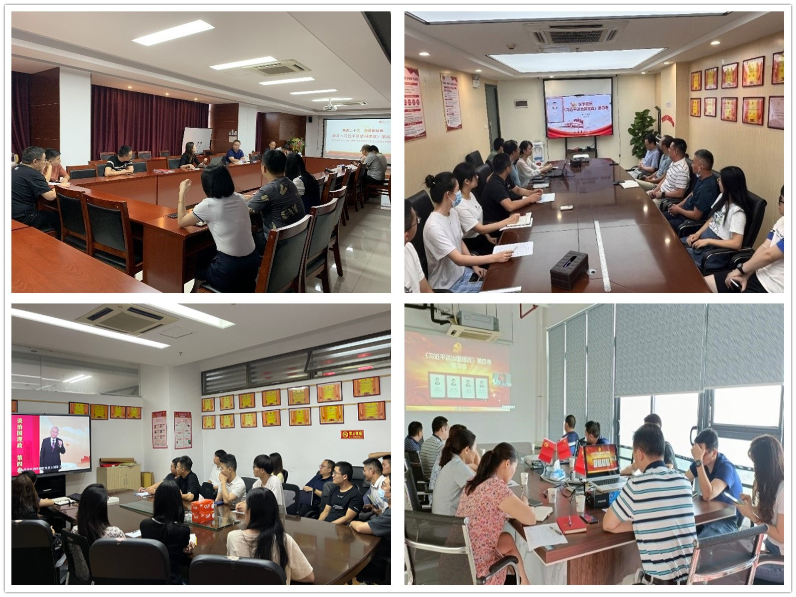 各党支部积极响应集团党委号召,采取集中学习研讨的方式,广泛召开支部党员大会、党小组学习会,集体观看《习近平谈治国理政》第四卷理论讲解视频,引导广大党员读原著、悟原理,并结合工作实际,认真贯彻落实习近平总书记的重要论述和讲话精神。