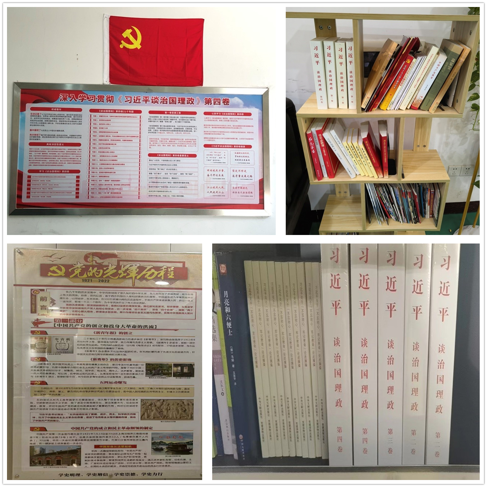 结合党的二十大即将召开的时机背景,为增强理论学习的持续性,推进红色学习阵地建设,部分党支部通过打造党建学习角与宣传栏,定期更新党建读物与宣传海报,鼓励党员利用空闲时间强化理论知识、涵养政治思想。