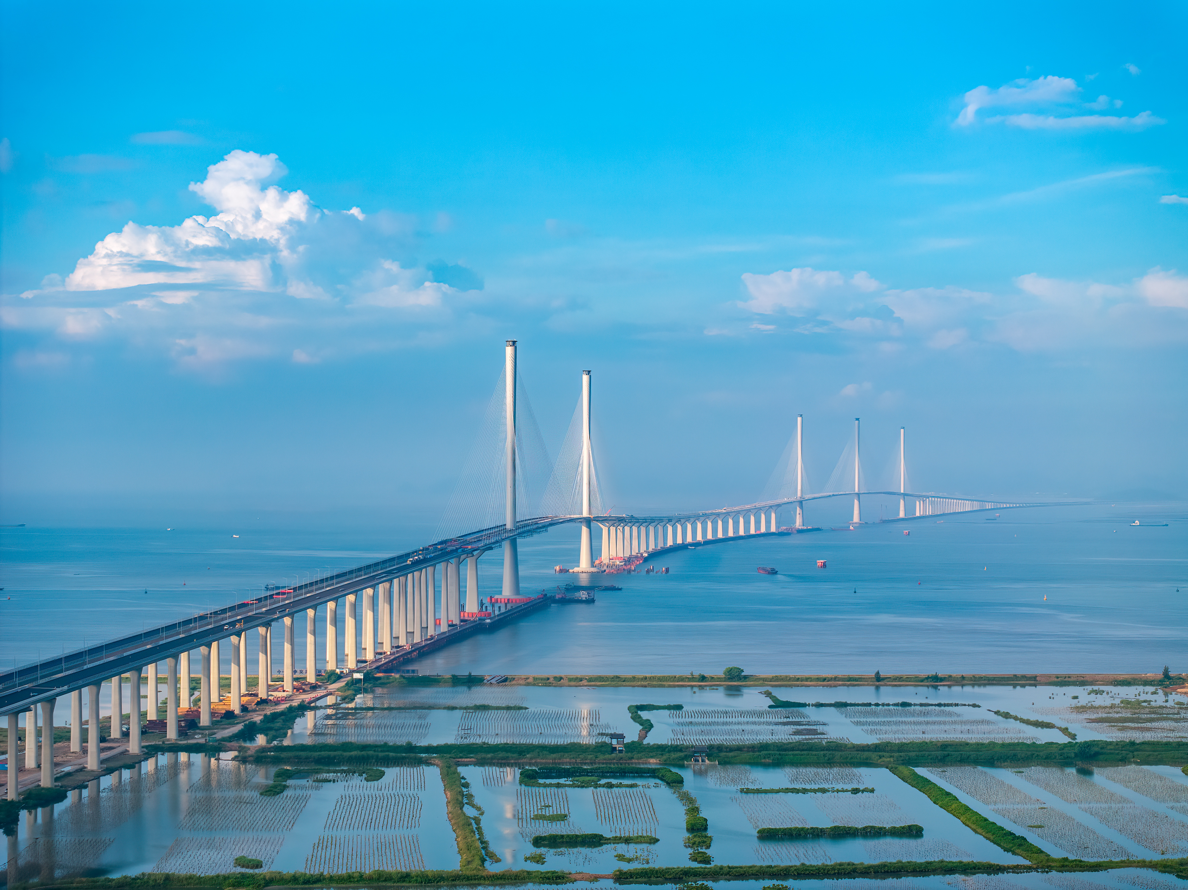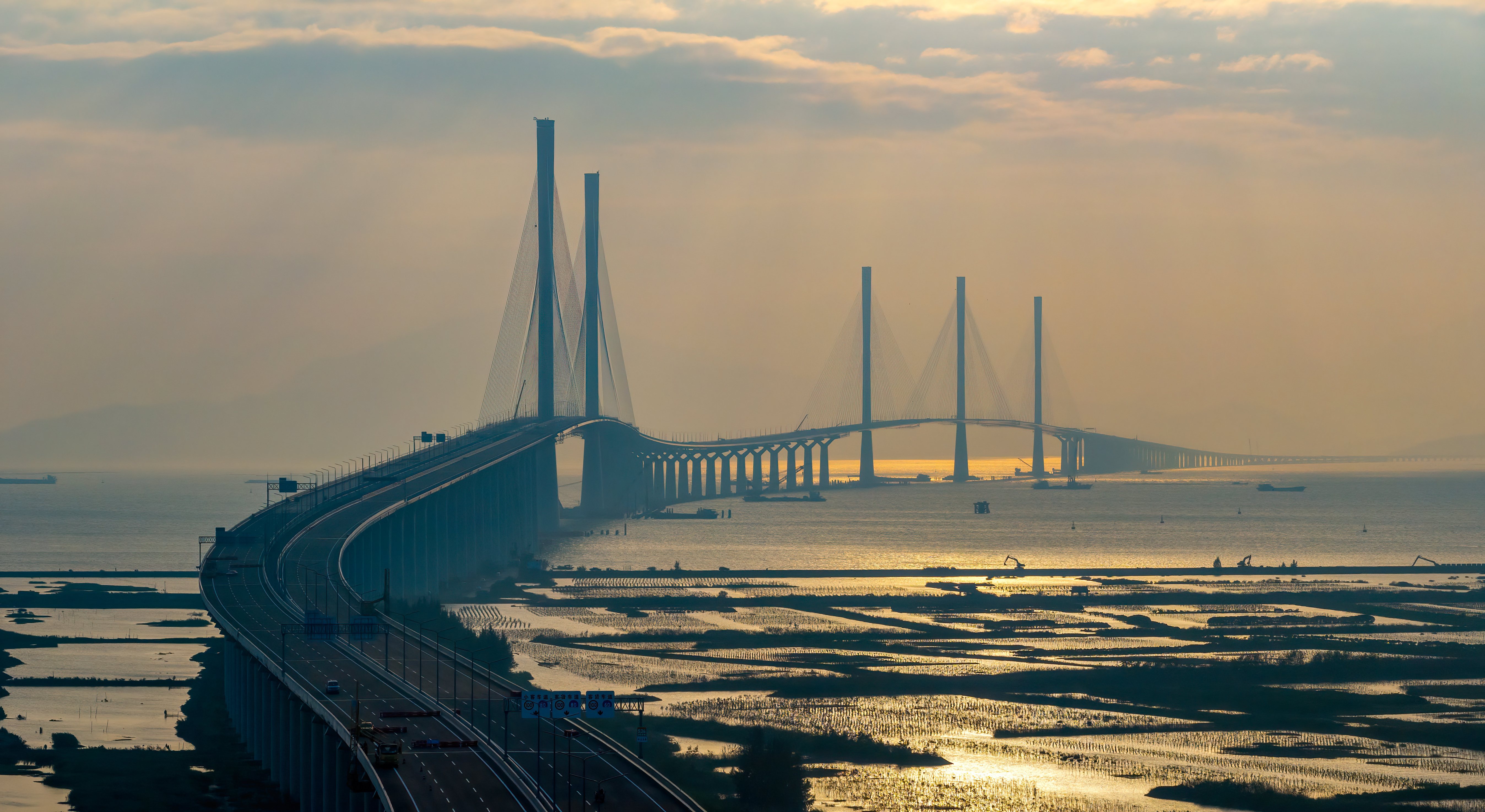 黄茅海跨海通道是贯彻落实《粤港澳大湾区发展规划纲要》的首个重大工程项目,也是港珠澳大桥的西延线,连接珠海金湾与江门台山,海域段约14公里。其控制性工程包括黄茅海大桥(主跨2×720米的三塔斜拉桥)、高栏港大桥(主跨700米的双塔斜拉桥)及中引桥(16×100米分体式钢箱连续梁桥)。