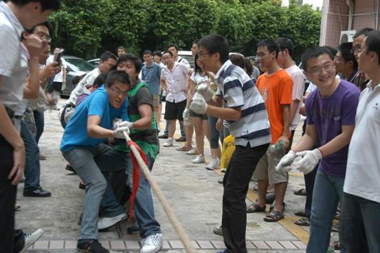 在公司领导和各部门、子(分)公司的大力支持下,在各工会小组的精心组织和全体员工的共同努力下,公司2010年度拔河比赛于8月23日下午圆满结束。经过数轮激烈的角逐,最终决出了冠、亚、季军。 冠 军:第八工会小组(后勤管理部) 亚 军:第二工会小组(第二路桥设计部) 季 军:第十工会小组(路桥分公司) 第十三工会小组(市政与交通工程部) 拔河比赛是公司的传统比赛项目,既是各参赛工会小组力量的比拼,更是他们团队精神的较量。通过比赛,促进了各工会小组之间的交流,增强了小组的团队凝聚力,也丰富了公司员工的业余生活。