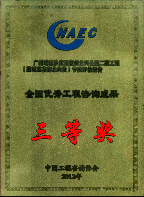 2、广州增城沙庄至花都北兴公路二期工程(荔城至花都北兴段)节能评估报告荣获三等奖