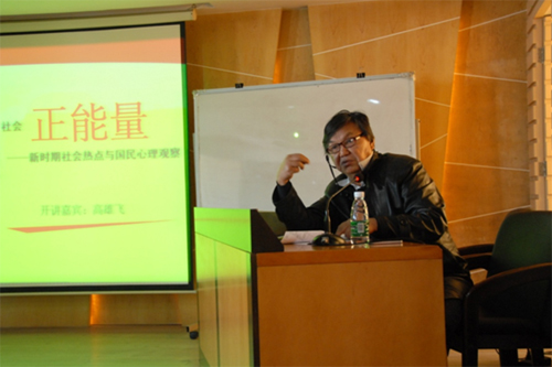 演讲过程中,高教授首先从改革开放的成就和民众的幸福感出发,向我们讲诉了“仇官”、“仇富”、“富二代”和“官二代”等非正常社会大众心理情绪所引发的社会公平公正问题;紧接着,又从问题入手,提出了维护和促进社会公平正义的方法论。高教授以“端正社会心理情绪”为核心的阐述充满正能量,有如冬日里的一碗心灵鸡汤。