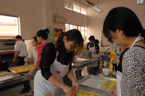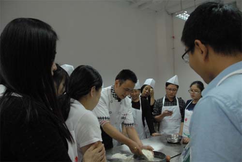 学习品种包含但不局限于慕斯、蛋挞、雪媚娘、酥皮面包、红豆面包、戚风蛋糕、抹茶布丁、蔓越莓饼干、酥皮奶油泡芙等。专业西点师不仅在操作前讲解如何选用原材料、原料配方、操作重点、注意事项,让学员从基础学习,轻松掌握;还在现场示范制作流程,零距离,手把手教学,让一切变得简单易懂,一学就会。广大学员通过亲手烘焙加工,自制的红豆吐司面包、奶油蛋糕新鲜出炉,色香味俱全。大家看着出炉的精致成品,欣喜不已,相互品尝比较,好一派热闹。