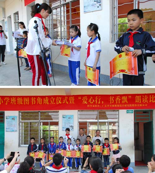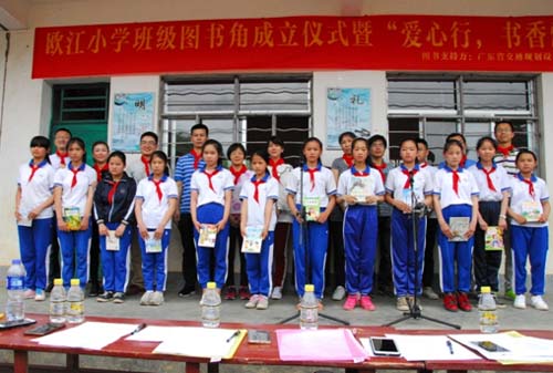 搭建一个“图书角”,分享一座“精神粮仓”——第二党支部党员同志们继续满怀着爱心和热情,践行他们服务山区留守儿童的创想。2017年5月5日,第二党支部党员同志们历经五小时车程,跨越三百里路程,到达河源龙川黄布镇欧江小学,走进山区校园,开展捐赠“爱心图书角”活动。这次活动中,第二党支部为欧江小学9个班级各创建了图书角,捐赠价值接近两万元。小小的图书角,装载的不仅是书籍和知识,更是支部党员同志们扶贫助困、捐资助学的爱心,以及他们对山区儿童健康成长的热切期盼。