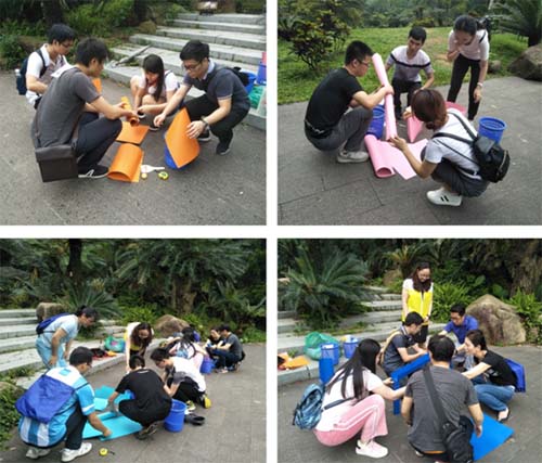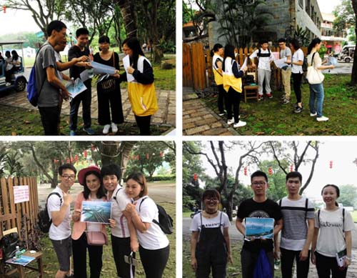 本次户外拓展活动共吸引了公司各工会小组三十余人报名参加,活动分7队进行。按任务抽签分为三类:狩猎组(共1组,除完成共同任务外,需要追捕并撕下任意五组各一张名牌),摆拍组(共3组,除完成共同任务外,需要按图片提示找到园区的五个指定地点并按指定动作摆拍),寻宝组(共3组,除完成共同任务外,需要寻找隐藏在园区不同地点的五个带有公司图标的旗子)。
