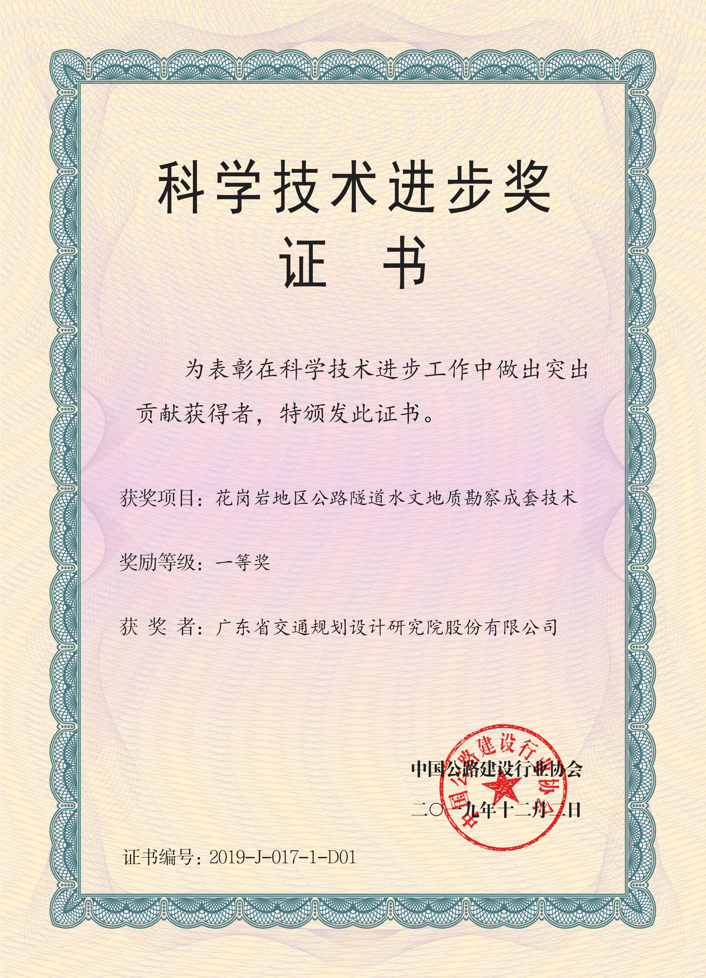 2.“花岗岩地区公路隧道水文地质勘察成套技术”荣获一等奖,承担部门为岩土勘察分院。